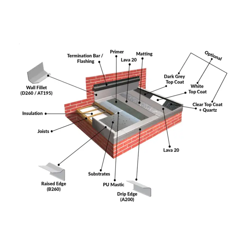 LAVA 20 can be applied to almost any surface, offering excellent waterproofing protection. Its vapour permeable nature ensures proper ventilation while providing a reliable barrier against moisture. Additionally, it is not affected by ponding water.